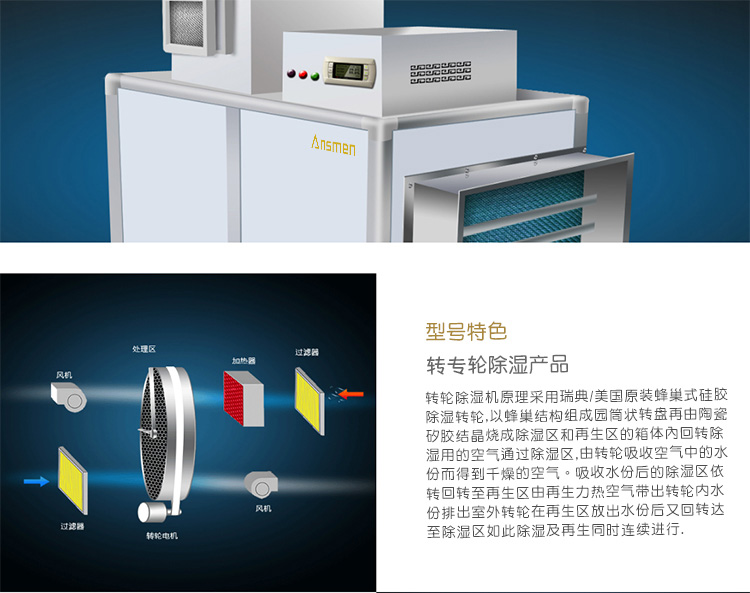 安詩曼是專業(yè)轉(zhuǎn)輪除濕機生產(chǎn)廠家,主要產(chǎn)品有工業(yè)除濕機,高溫烘干機,轉(zhuǎn)輪除濕機,低溫除濕機,吊頂除濕機,商用抽濕機,商用除濕機,工業(yè)抽濕機,工業(yè)干燥機等產(chǎn)品